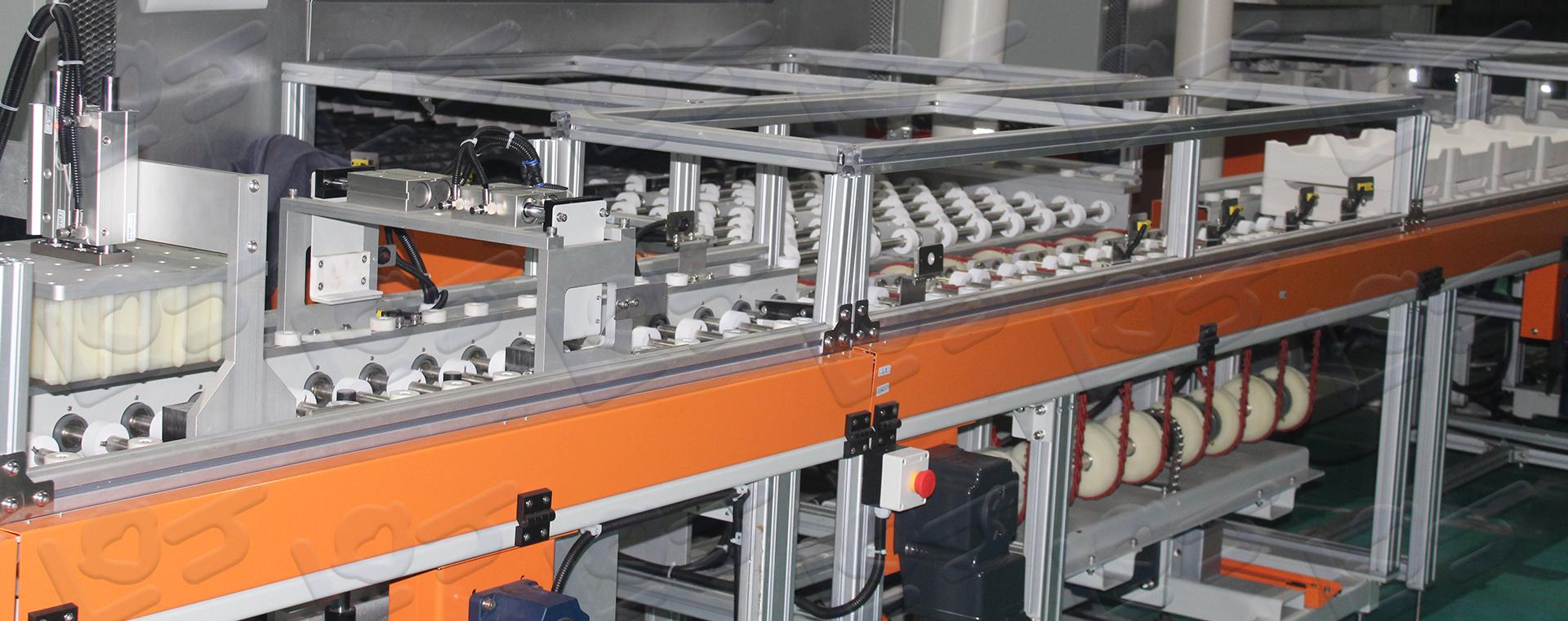 鋰電外軌線采用全新的無人化智能生產標準設計,整條生產線無需人工干預,匣缽傳輸高效穩定,各工位動作流暢平穩,整體密封性能高。